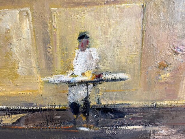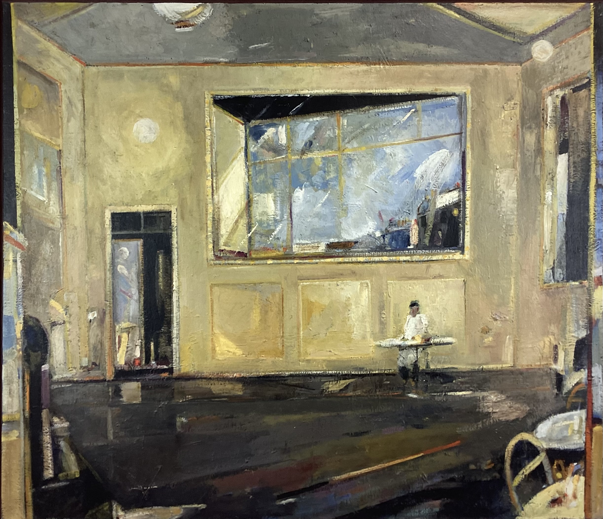 Für Peter Stettlers weitere künstlerische Laufbahn war sein Pariser Aufenthalt von 1967 wegweisend. Einerseits erlag Stettler dort der Faszination für die Banlieues und Industriezonen, die die Grossstadt umziehen, andererseits entdeckte er für sich auch die Pariser Intérieurs: Cafés, Tanzsäle sowie Künstlerateliers. Doch obwohl die reale Welt den Anstoss zu seinen Bildthemen gab, entwarf Stettler ganz eigene, imaginierte Räume und anonymisierte urbane Landschaften, in denen die Menschen fehlen oder bestenfalls als kleine Nebenfiguren in Erscheinung treten.