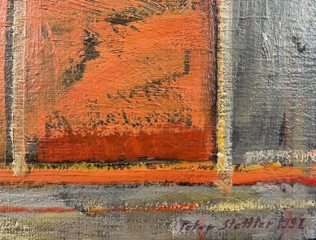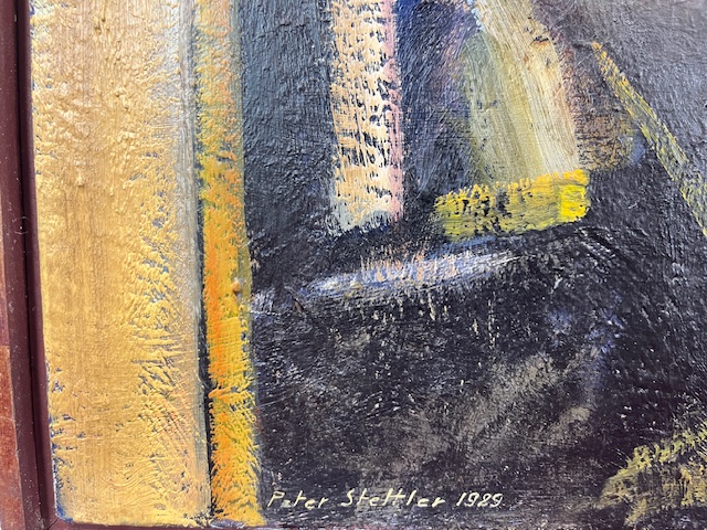 Peter Stettlers Frühwerk steht in stilistischer wie thematischer Hinsicht unter starkem Einfluss seines Vaters. Doch bereits in den frühen 1960er-Jahren befreite er sich immer mehr von dieser Abhängigkeit. Seine Gestalten nehmen nun Platz in Interieurs und werden diesen zunehmend untergeordnet. Gleichzeitig malte er seine ersten Industrielandschaften, die in ihrer atmosphärischen Stimmung und im pastosen Malauftrag eine eigene, vom väterlichen Vorbild endgültig befreite malerische Handschrift deutlich werden lassen.